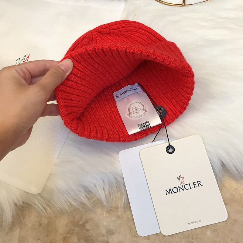 入手困難 モンクレール リブ ビーニー ロゴ パッチ ニット帽 偽物 mow92760