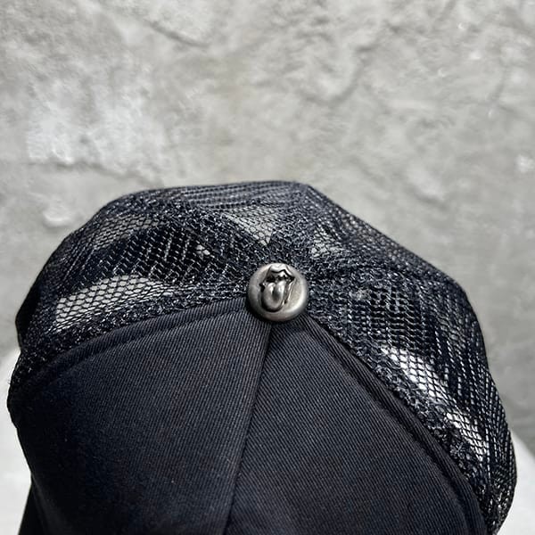 ブランド:クロムハーツ偽物クロムハーツ メッシュキャップ 偽物 ローリング ストーンズ レザーパッチ トラッカー ハット ブラック Kug96302