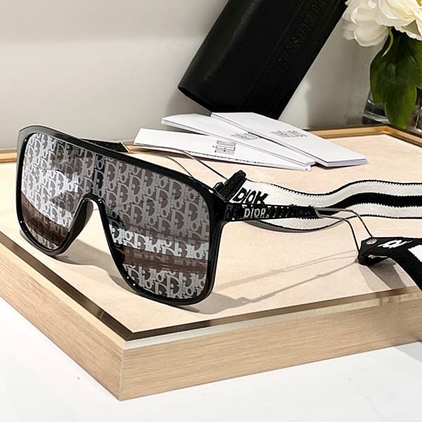 ディオール オブリーク モチーフが付いたシルバーのミラーレンズ