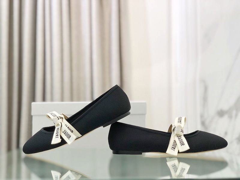 セール新作ディオール “Miss B”バレエフラットシューズ コピー ブラック テクニカルファブリック deu05038