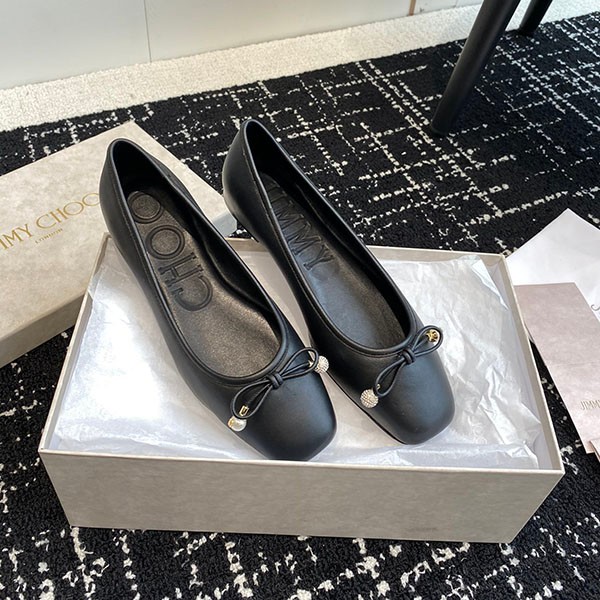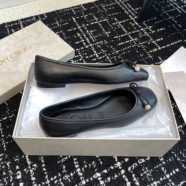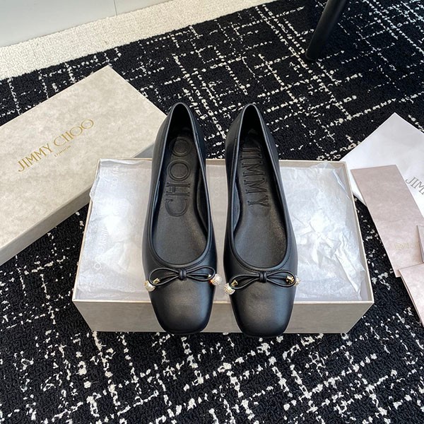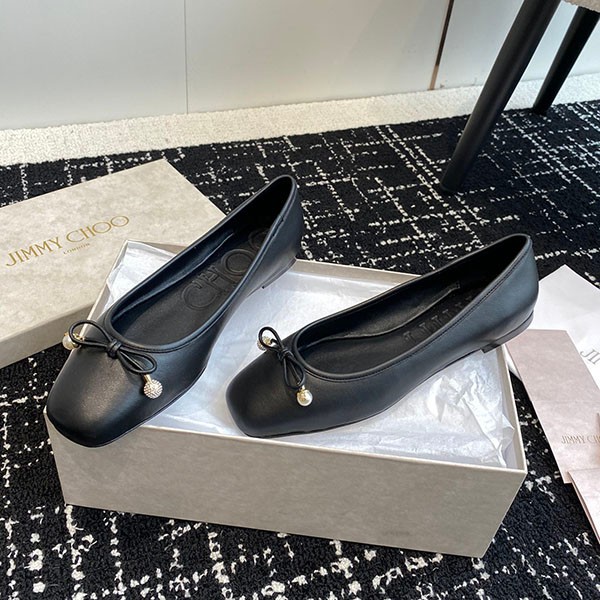 ジミーチュウ コピー新作 Elme パール付き ナッパレザー・フラットシューズ jir95278