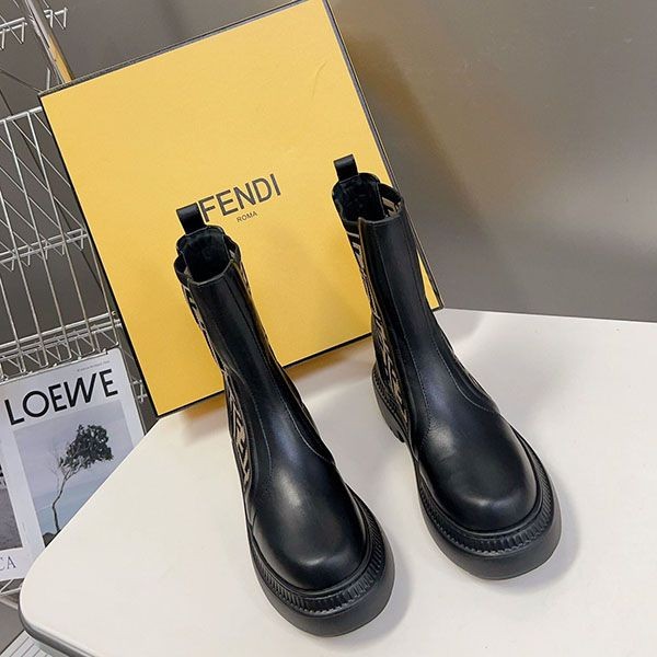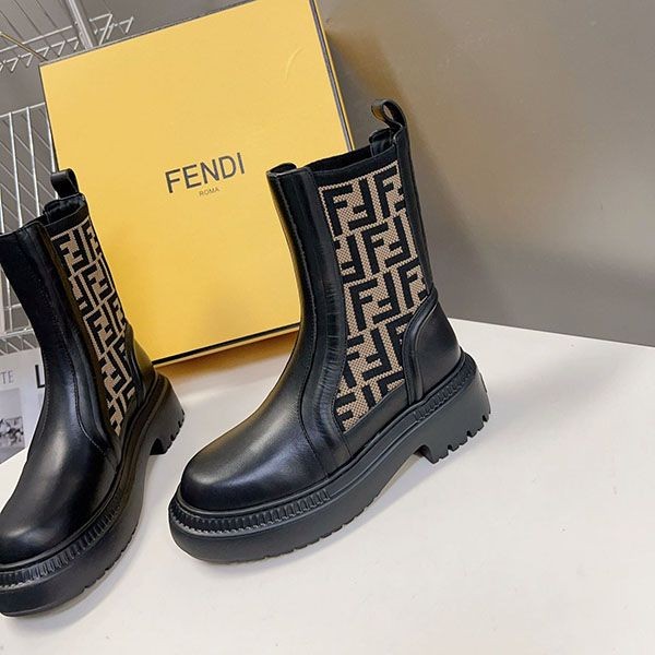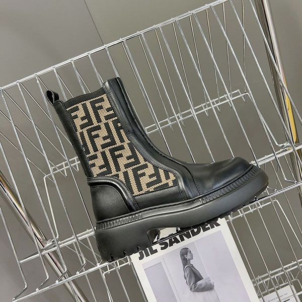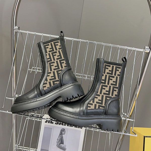 一目惚れ♪ フェンディ レザーストレッチファブリック バイカーブーツ 偽物 fec44917