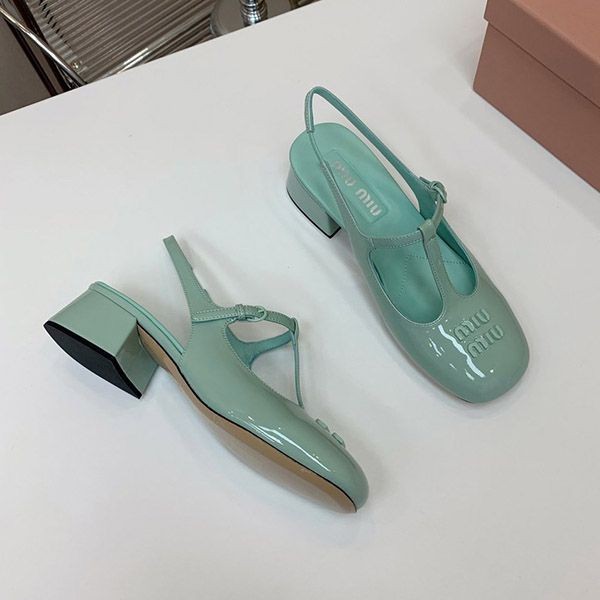 【大特価】ミュウミュウ パテントレザー スリングバック パンプス mye52384
