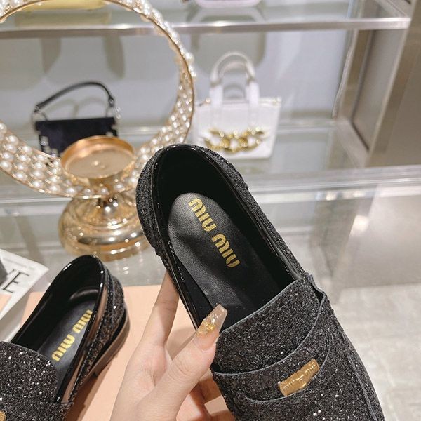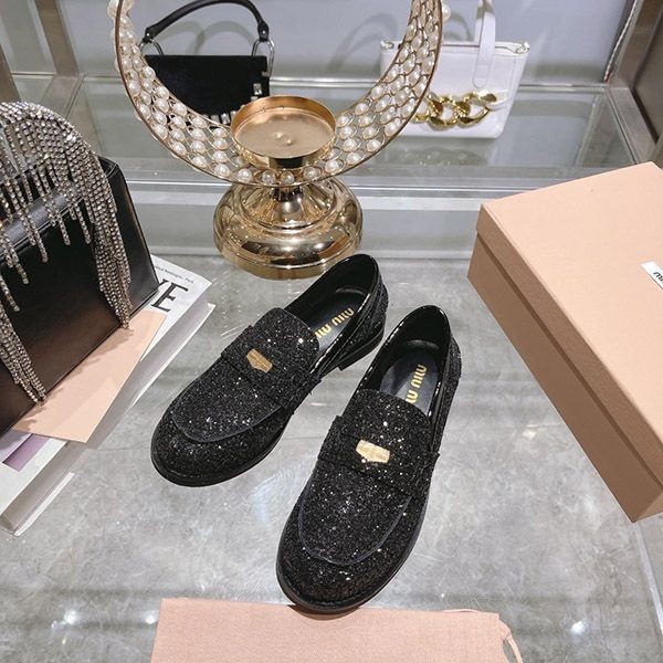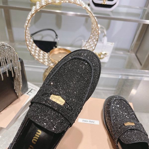 ブランド:ミュウミュウ偽物ミュウミュウ グリッターローファー
