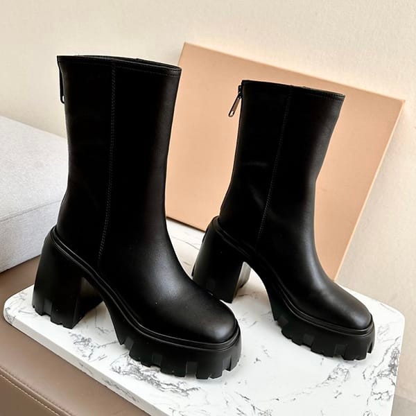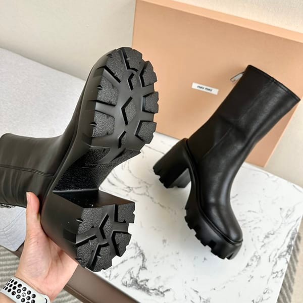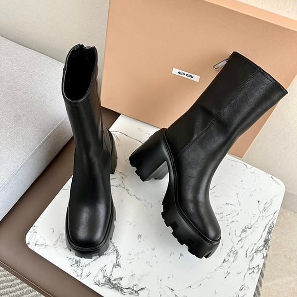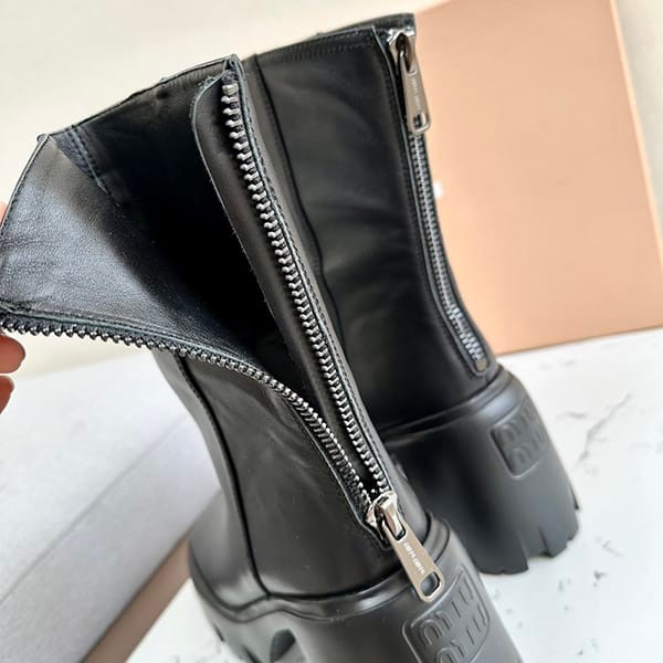 セール新作ミュウミュウ 偽物 オーバー ソールレザーアンクルブーツ myn13986