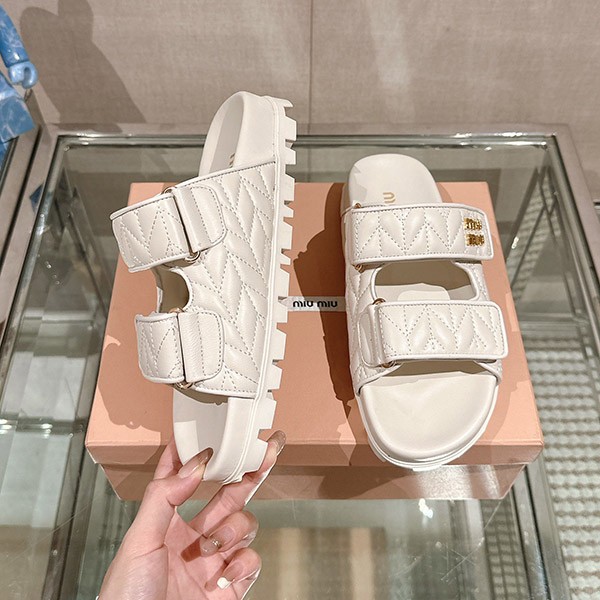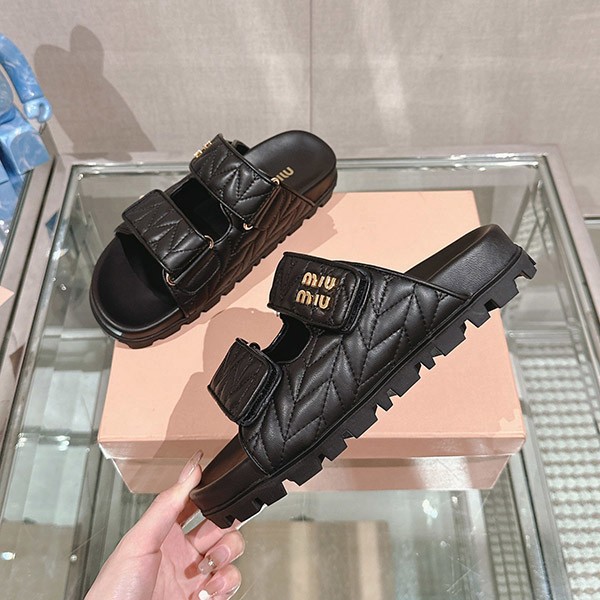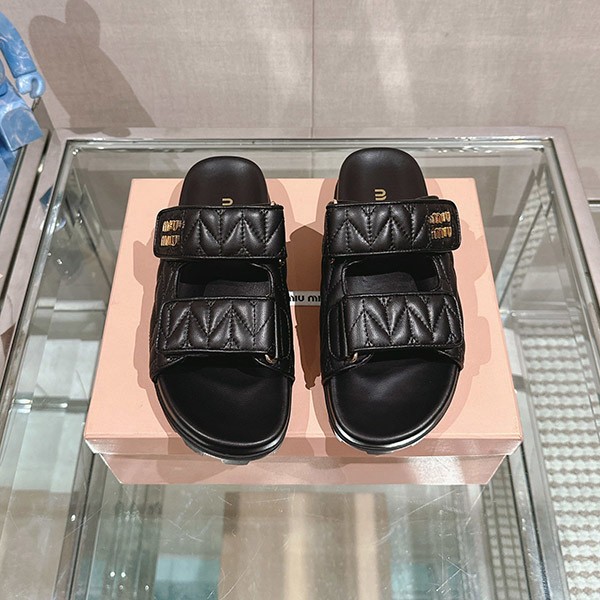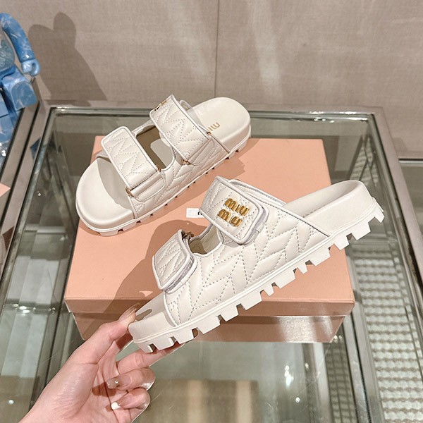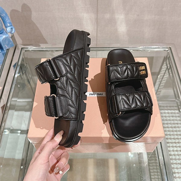 ☆超人気☆ミュウミュウ マテラッセ ナッパレザー スライドサンダル コピー 2色 5XX640