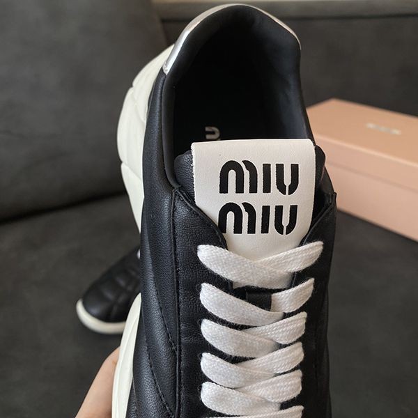 24秋冬プレ☆ミュウミュウ ベースボールスニーカー 偽物☆ブラック myx02852