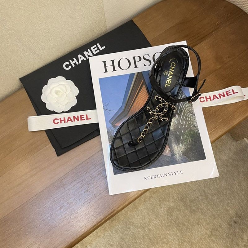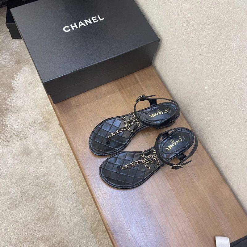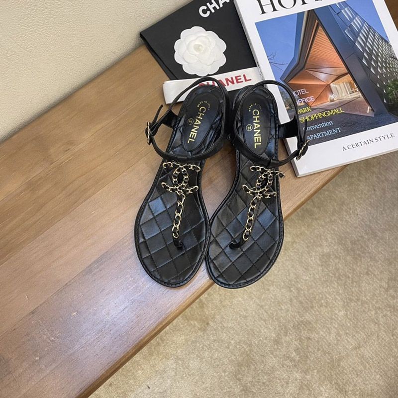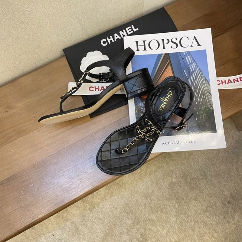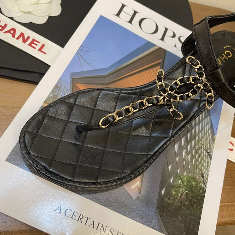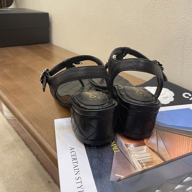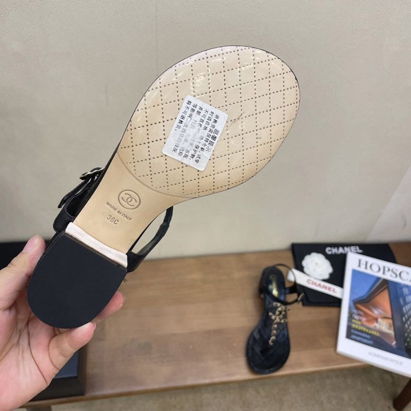 シャネル サンダル コピーcc ロゴ 黒 送料込み 靴 コルク 革 チェーン shi84081