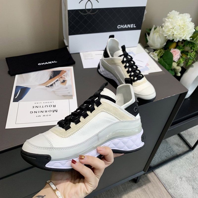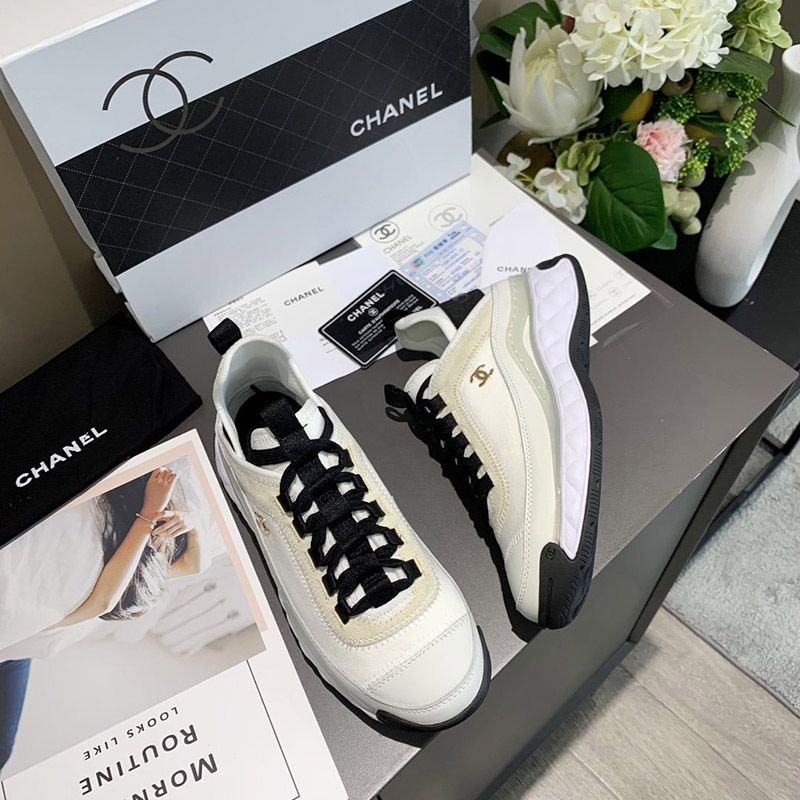 シャネル 生産中止 ココマーク 偽物 レザー×ファブリック スニーカー G35617