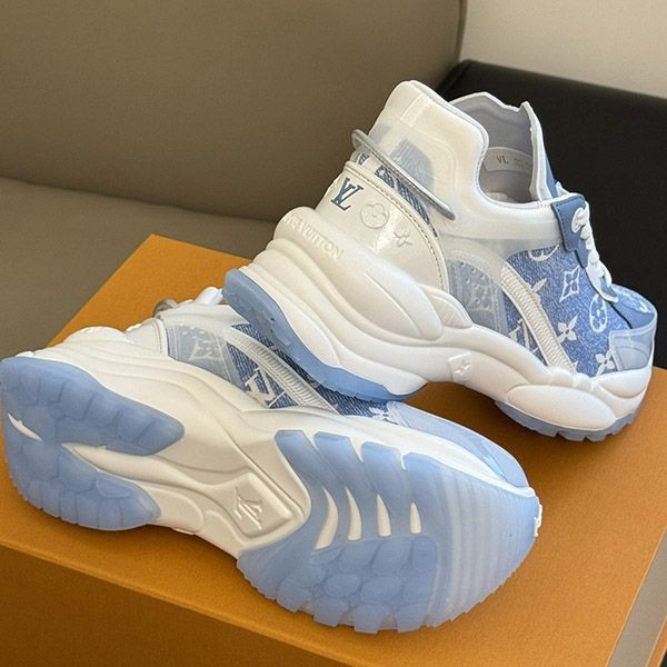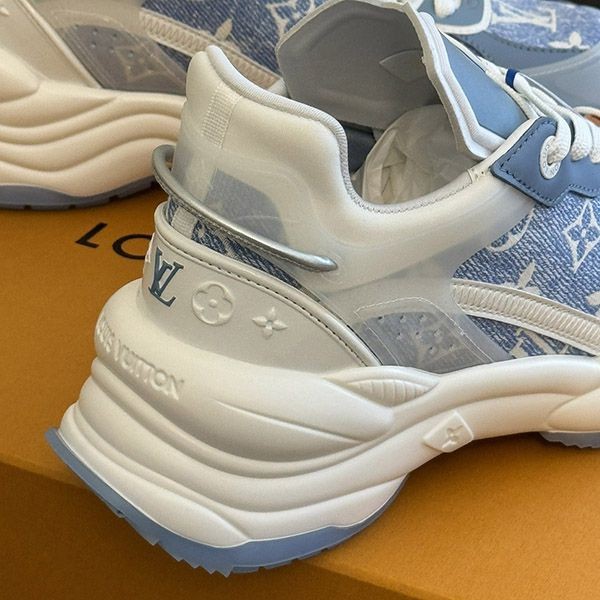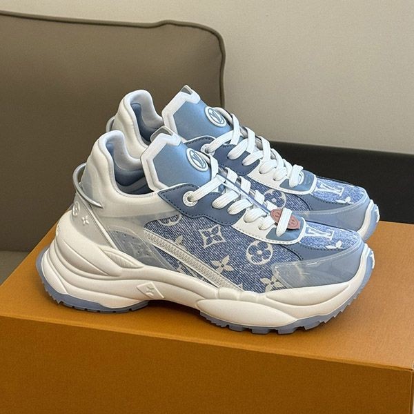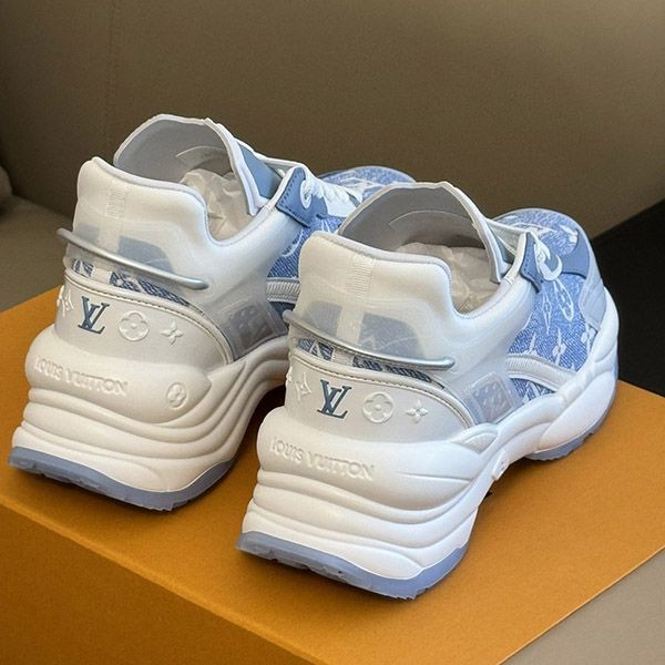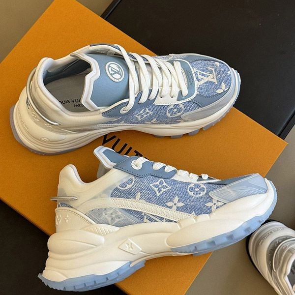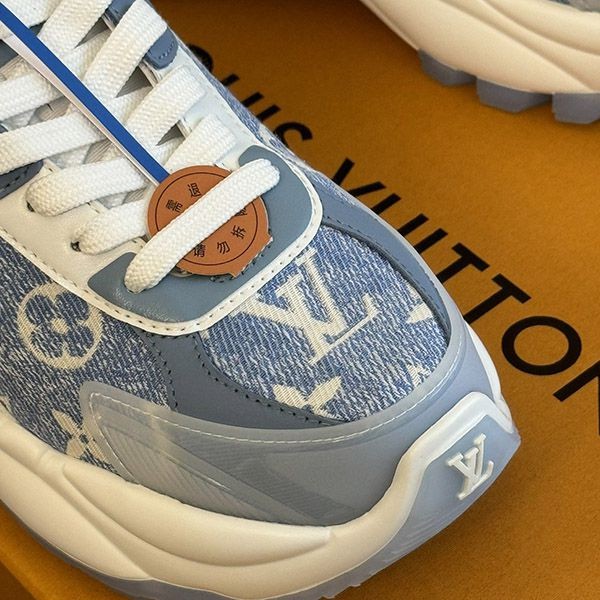 即発送 ルイヴィトン スニーカー《RUN 55》ブルー デニム ロゴ vuv73612