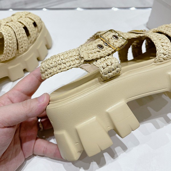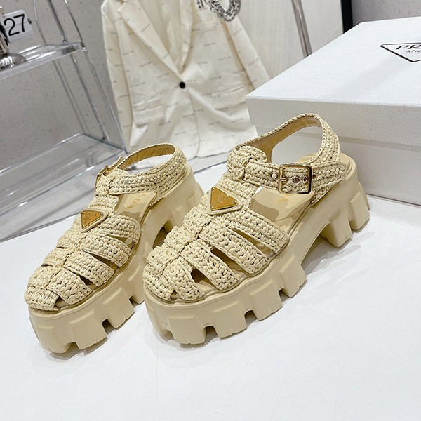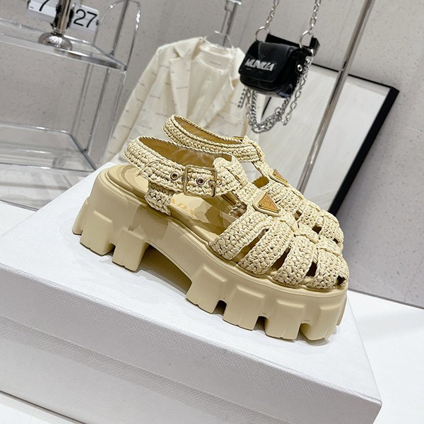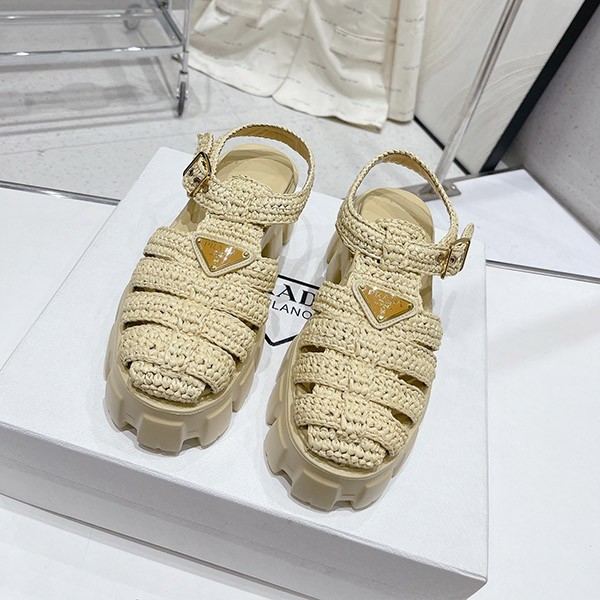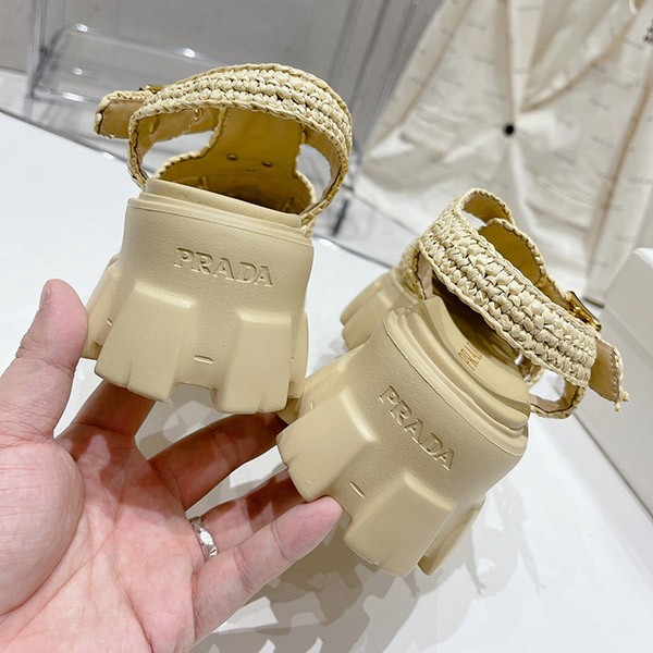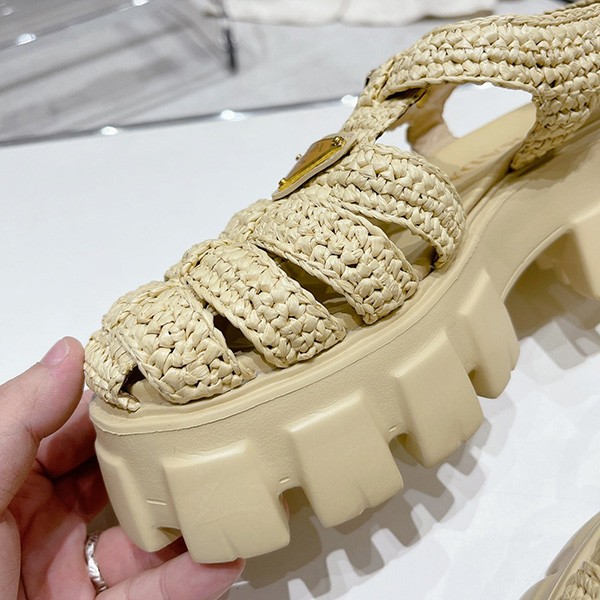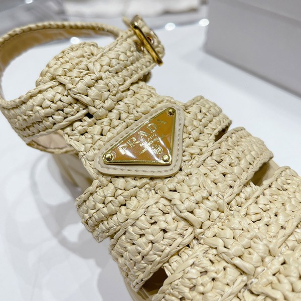 プラダ コピー トライアングルロゴ付き モノリス ラフィア サンダル pus37790