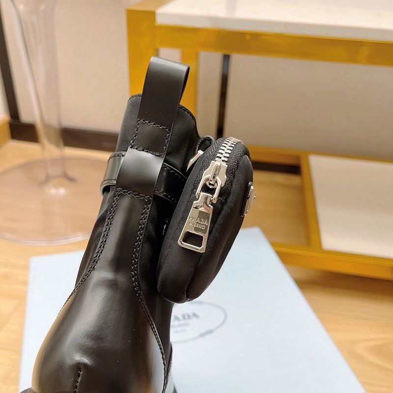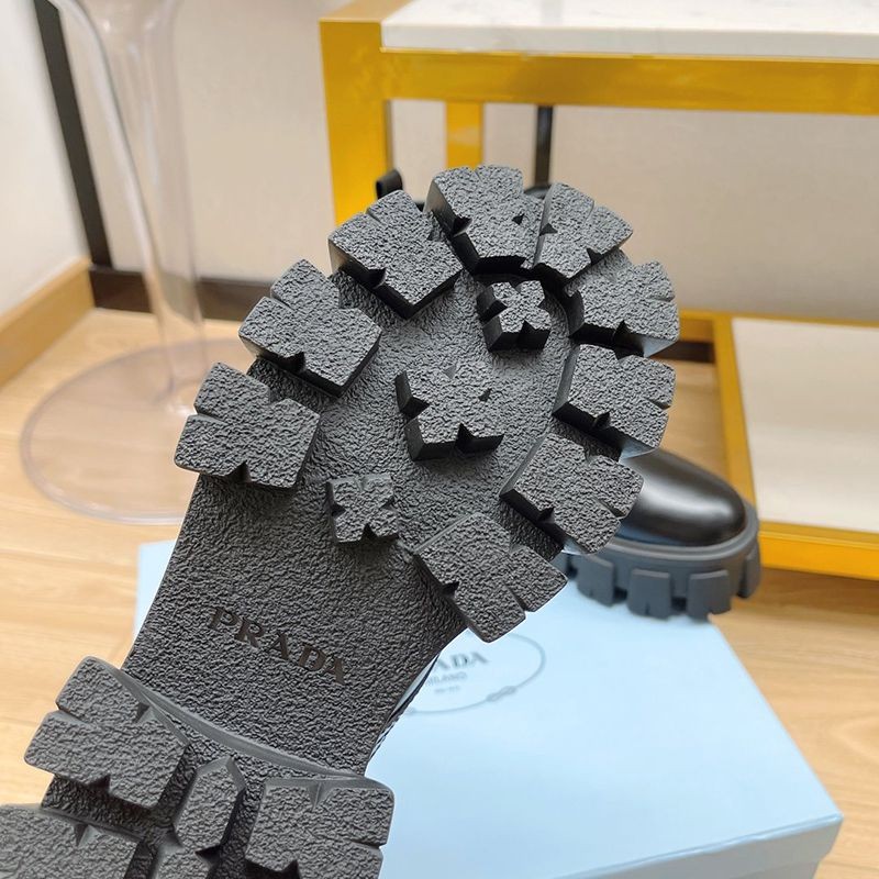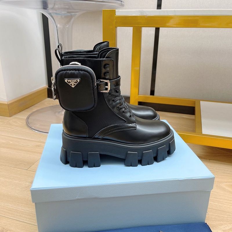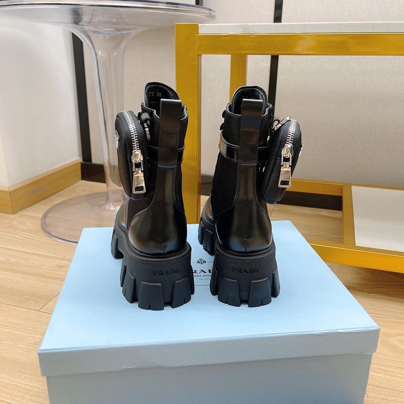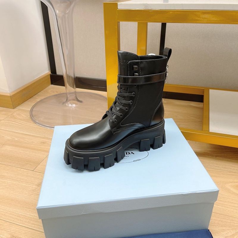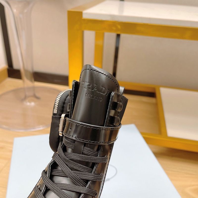 超話題!プラダ モノリス 偽物 ブラッシュドレザーxナイロン コンバットブーツ pur30762