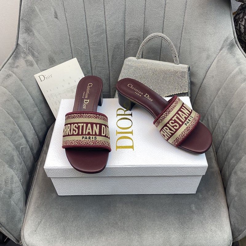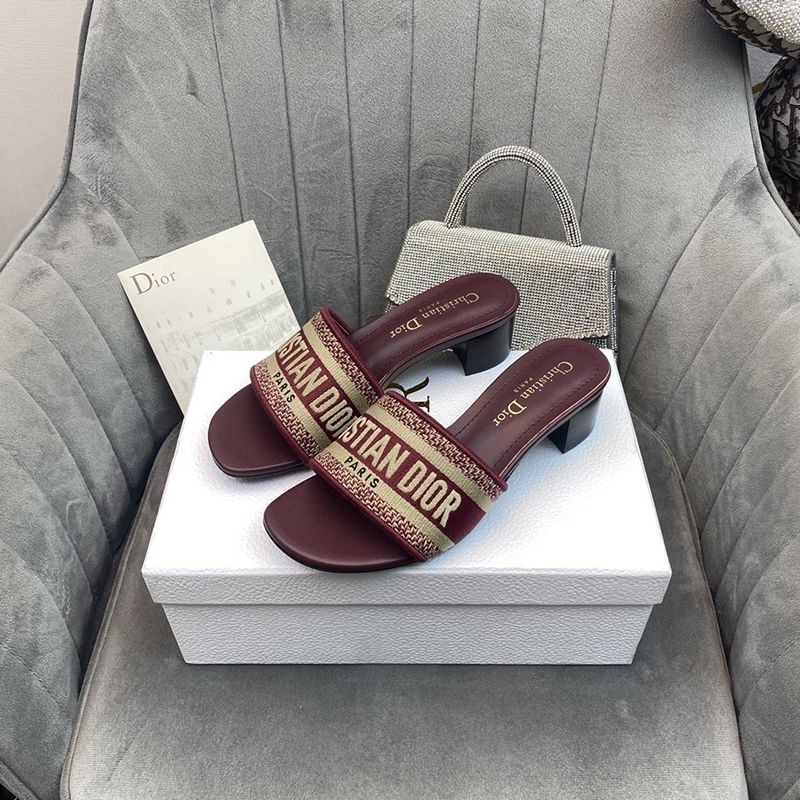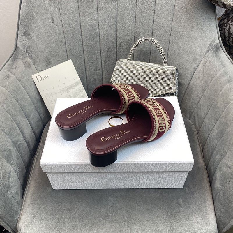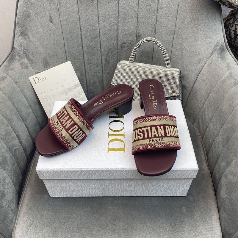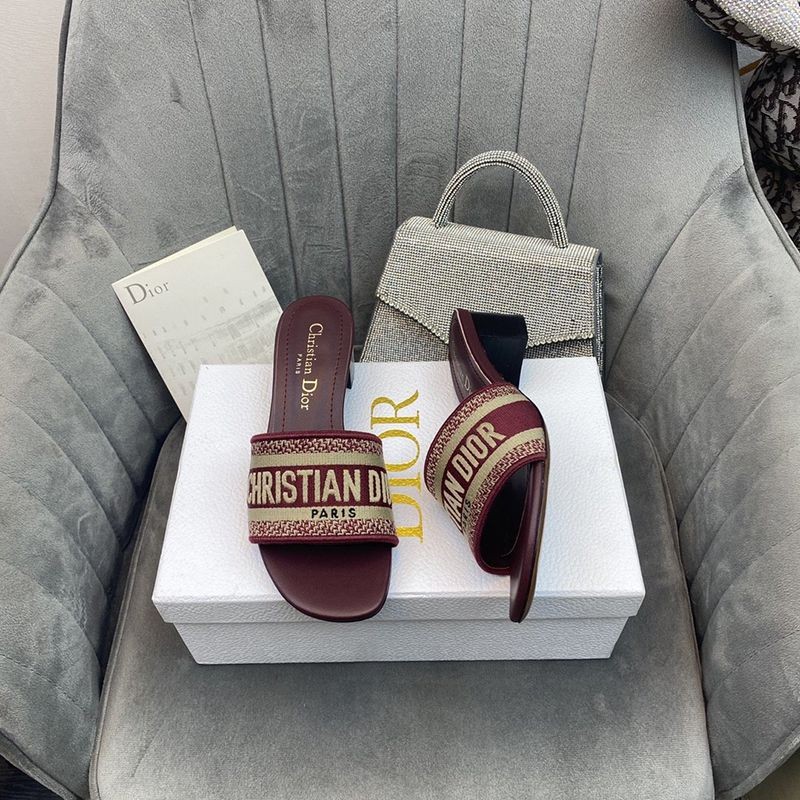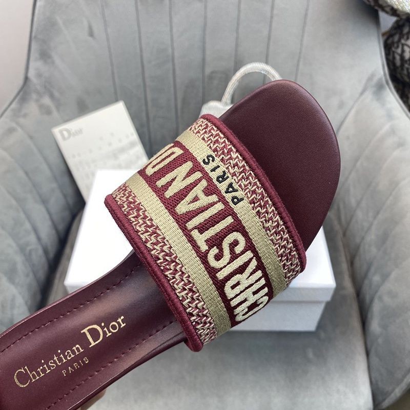 【日本未発売】ディオール Dウェイ ヒールミュール コピー★レッド エンブロイダリーコットン dey78144