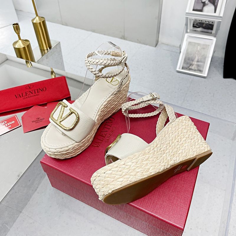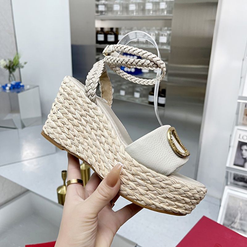 ★日本!!人気!ヴァレンティノ ストラップウェッジサンダル 偽物 ラフィア ピンク outlet Vun99610