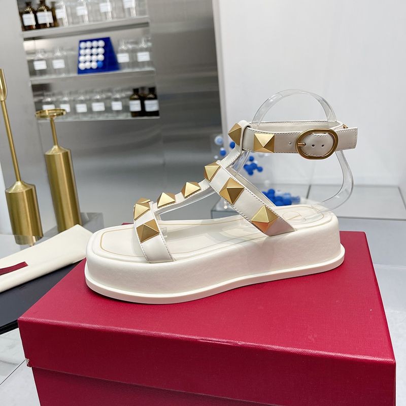 入手困難 ヴァレンティノ フラットフォーム ローマンスタッズ サンダル 偽物 40MM Vuk86118