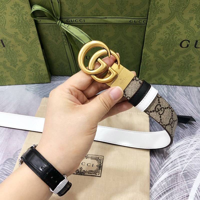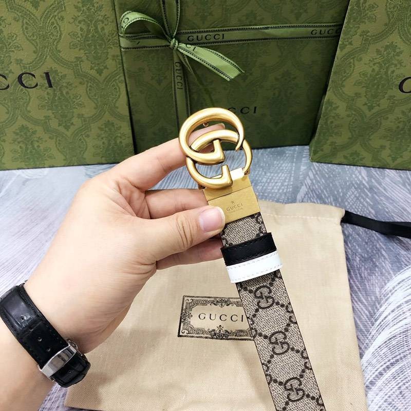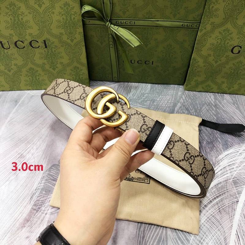 入手困難 グッチ キャンバスGG柄ベルト 偽物ダークブラウン レディース 30mm gui36842