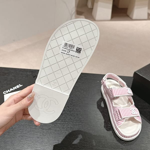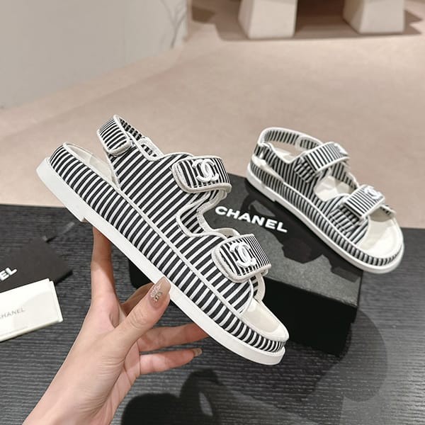 セレブ多数愛用シャネル パロディ ボーダー CCロゴ フッドベッド サンダル 4色 shs04659