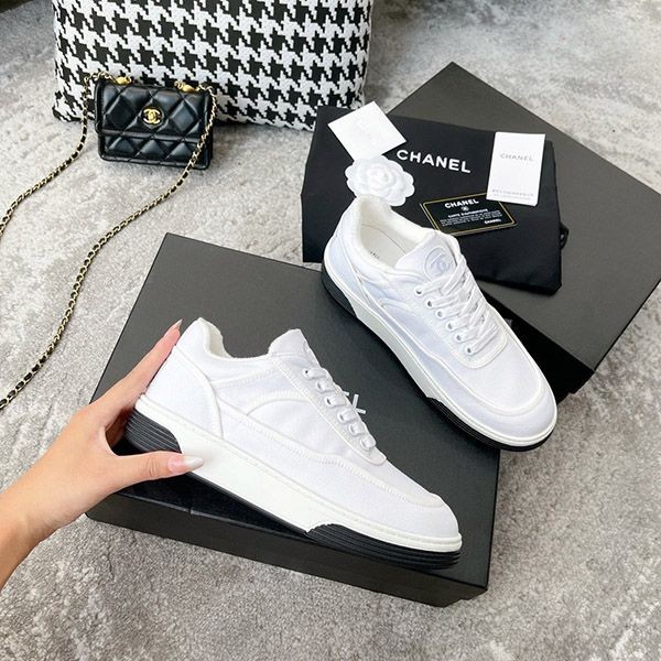 超話題!シャネル ホワイト ファブリック スニーカー 偽物 shc48596