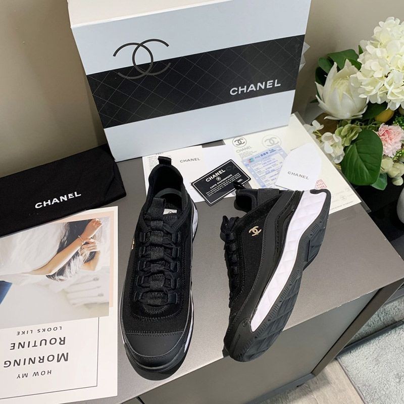 超人気♪シャネル スエード ベルベッド スニーカーコピー ブラック shv39882