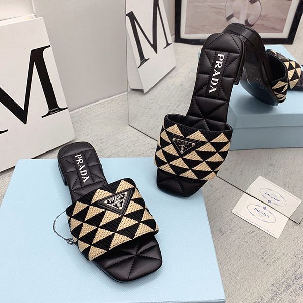 稀少 プラダ 刺しゅう生地スリッパ 偽物 pub17543