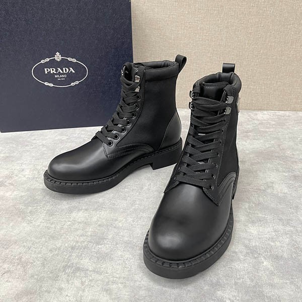 大人気!プラダ ブラッシュドレザー&Re Nylon ブーツ コピー puu28255