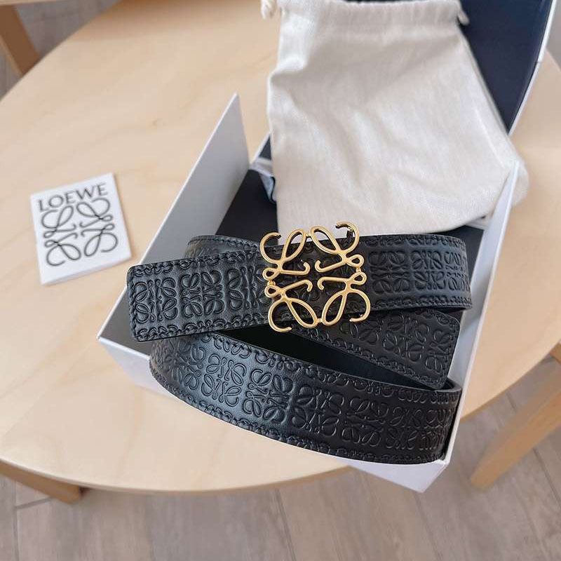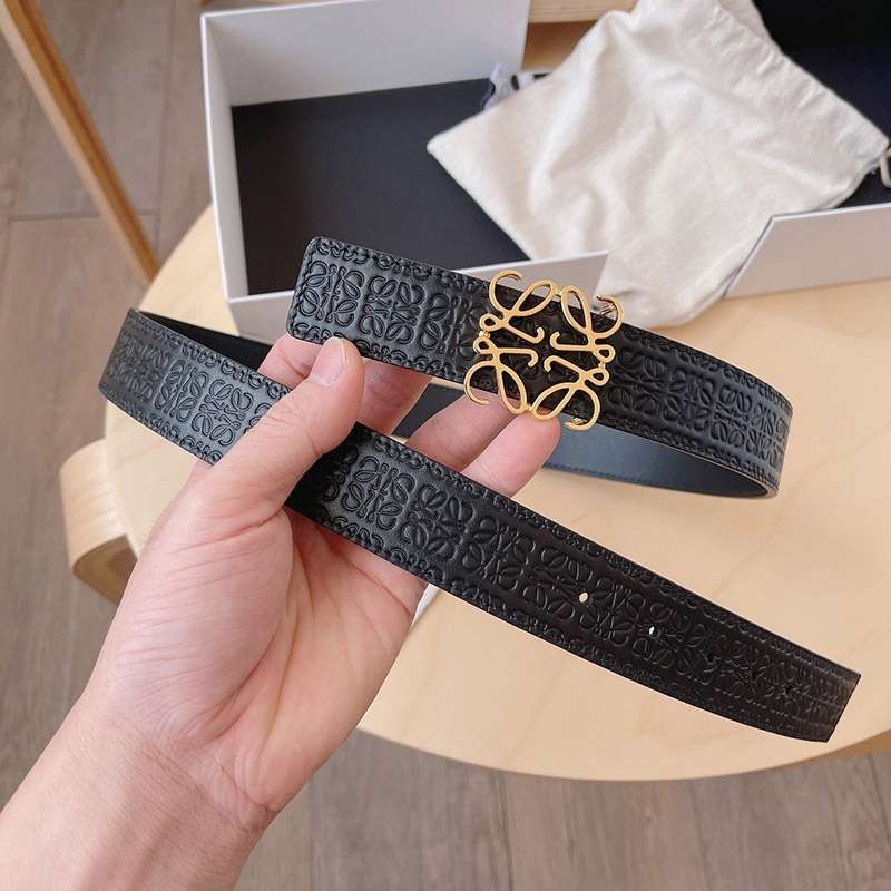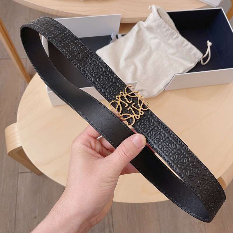 ロエベ カーフレザー アナグラムバックルリバーシブルベルト偽物 3.0 cm loc44370