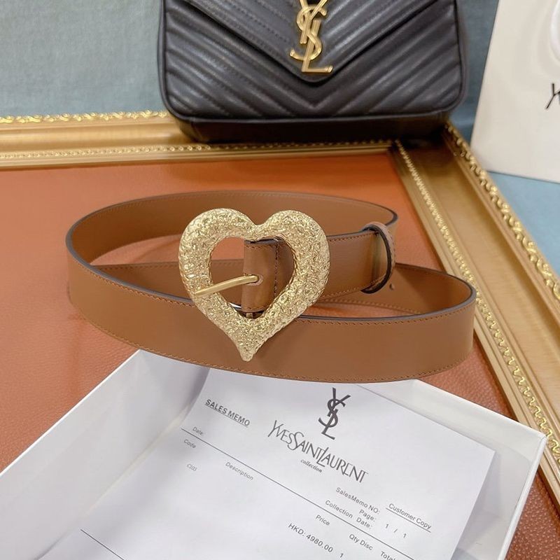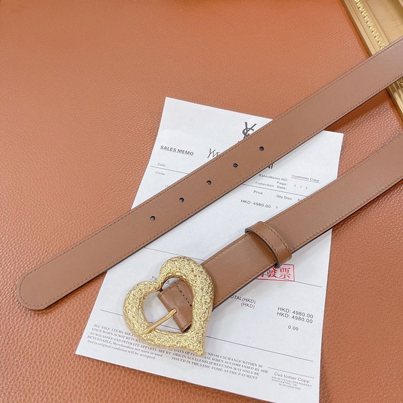 最安値挑戦サンローラン ハート バックル レザー ベルト 偽物 30mm Saz19640
