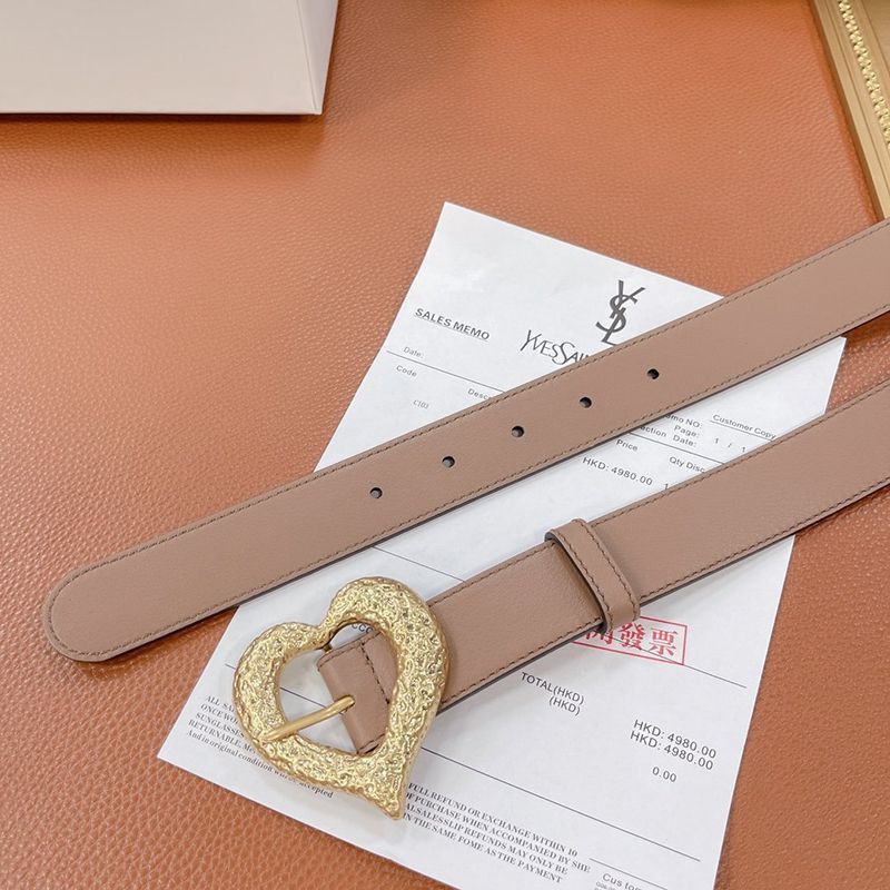 人気急上昇サンローラン ハート バックル レザー ベルト コピー 30mm Sal14759