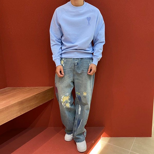 ★日本!!人気!アミ パリス 偽物 ブルー トレーナー スウェット ロゴ amr28854