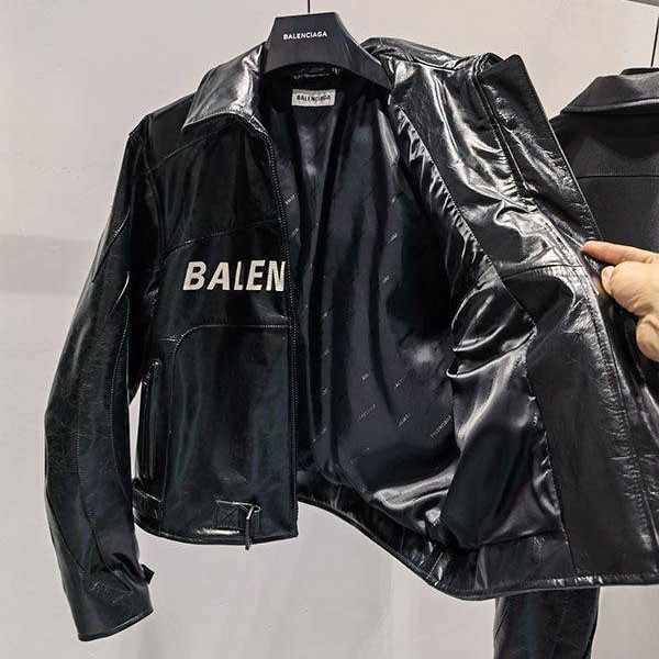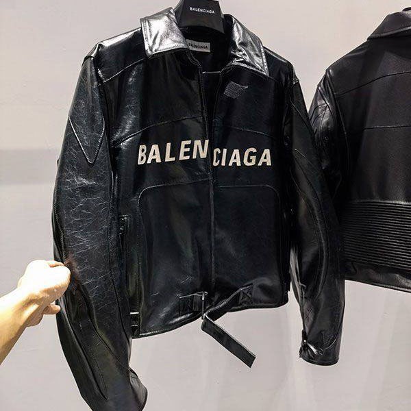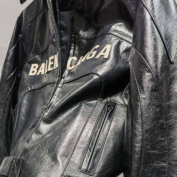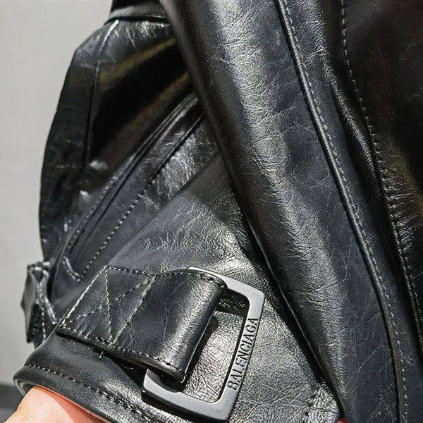 バレンシアガ ラムレザージャケット 偽物 ブラック baq76156