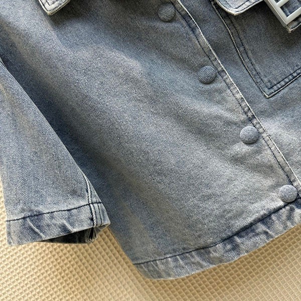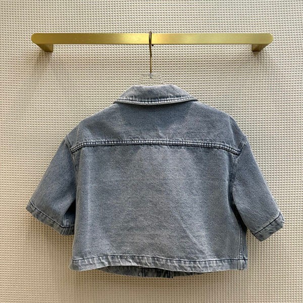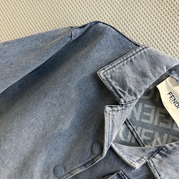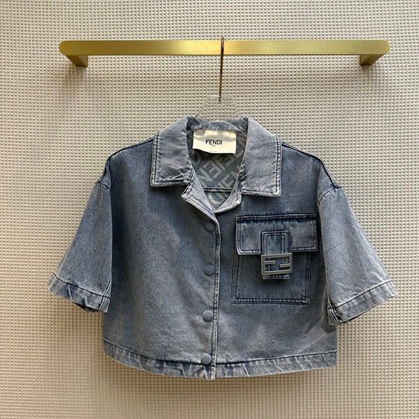 入手困難 フェンディ 偽物 クロップド丈 FFバゲット装飾 半袖 デニムジャケット fep41634