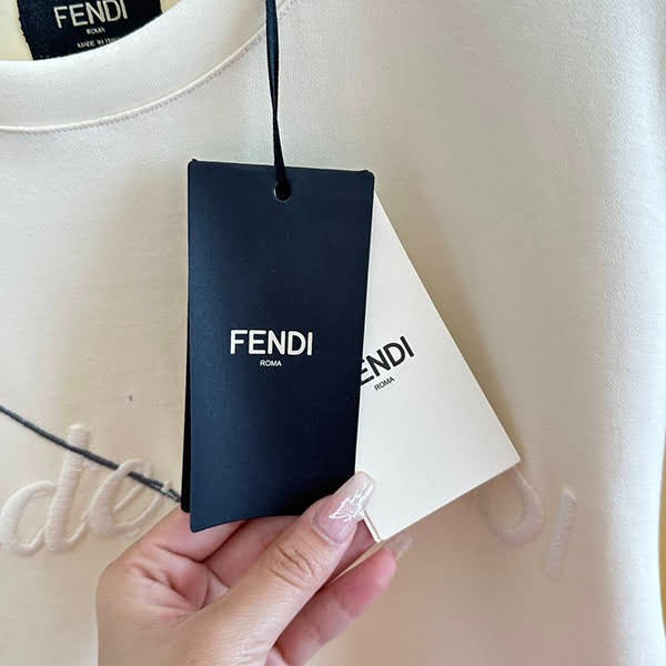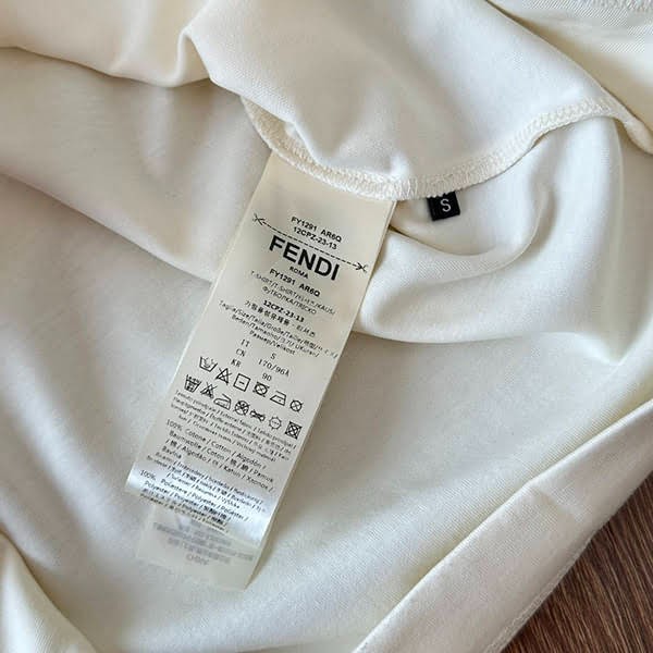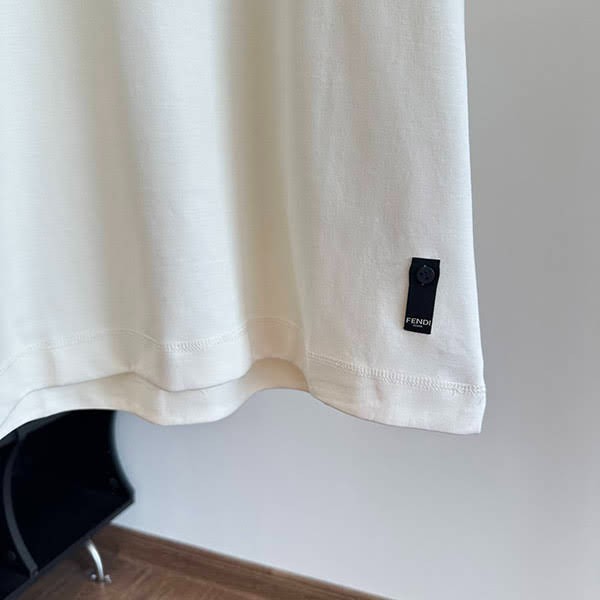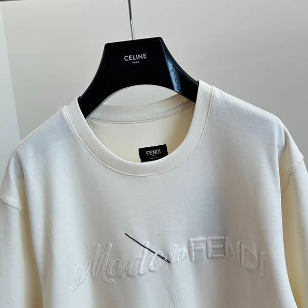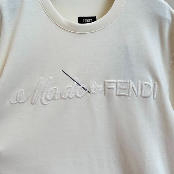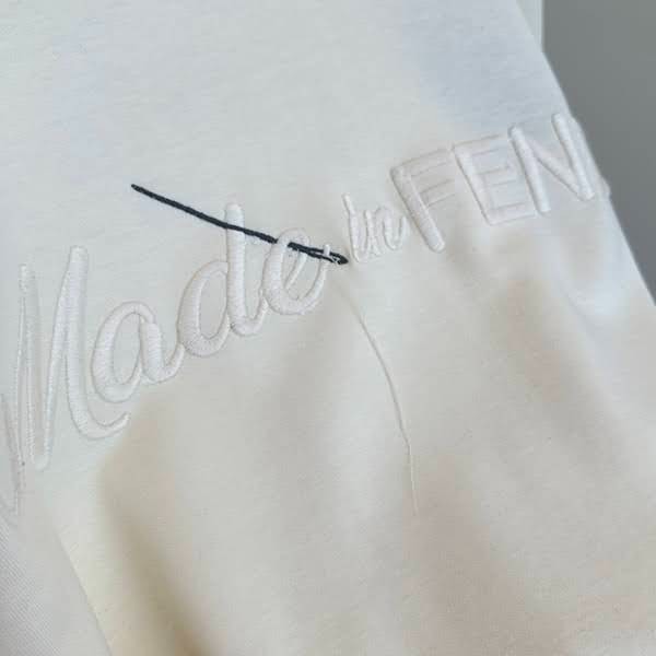 フェンディ コピー メイドイン フェンディ レタリング刺繍 コットンTシャツ FY1291A