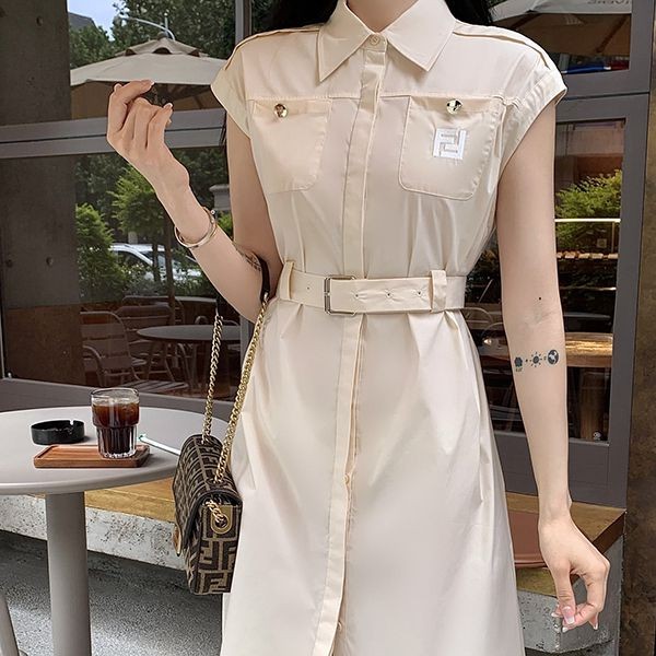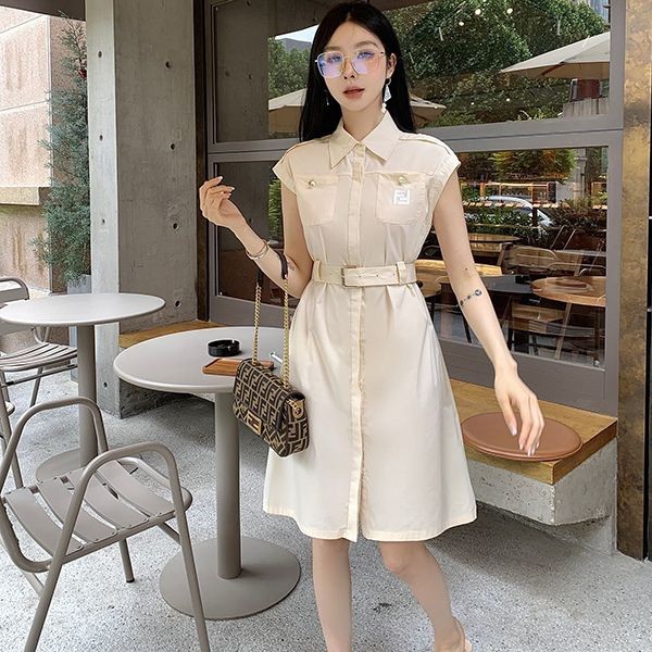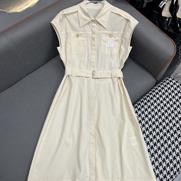 新色登場☆フェンディ ベルテッド・ワンピース 偽物 ホワイト fer15517