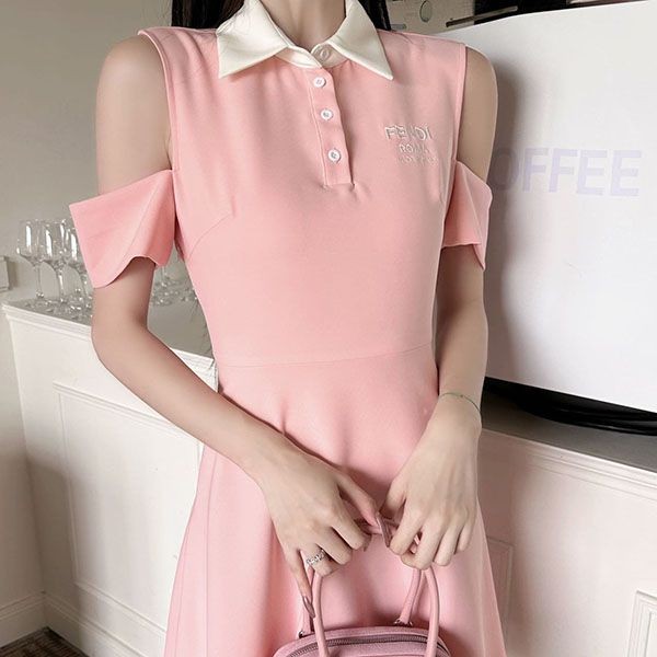 可愛い フェンディ ロゴ オープンショルダー n級品ワンピース fei62307
