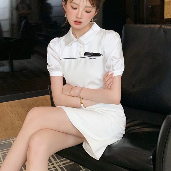 シアースリーブ ドッキングシャツ ボウタイシャツブラウス