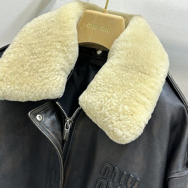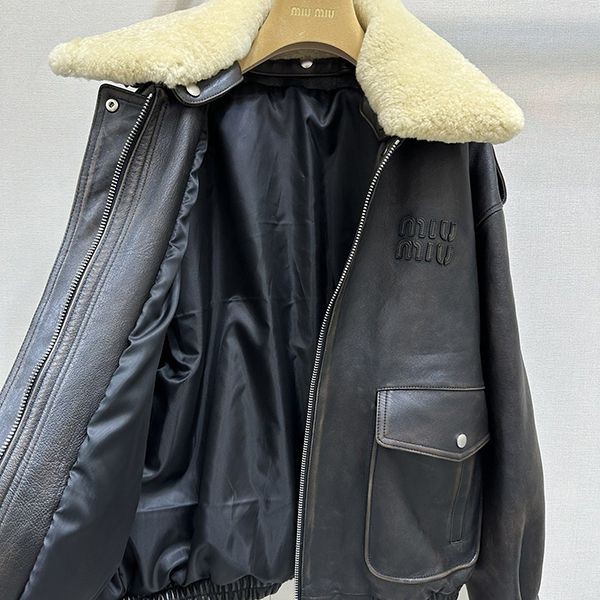 超限定♪ミュウミュウ シアリングトリム レザージャケット 偽物 myu06779