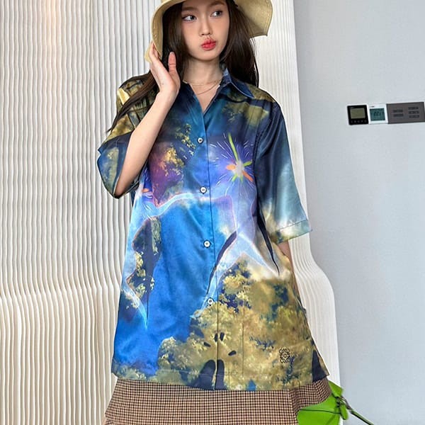 最新でオシャレロエベ ハウルの動く城 コラボ 偽物 マジカルスカイ シャツ lon47826