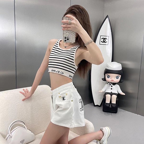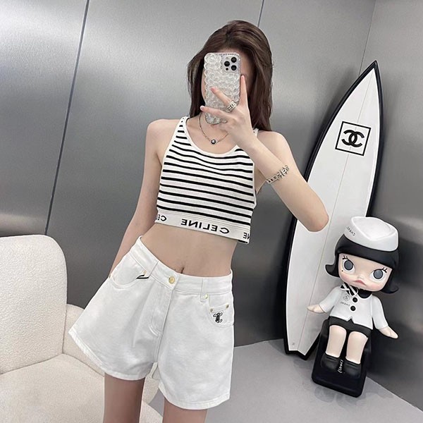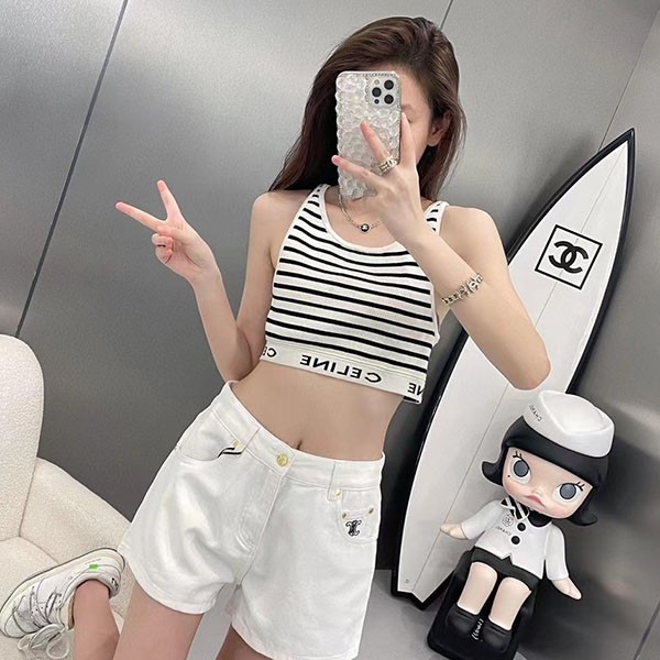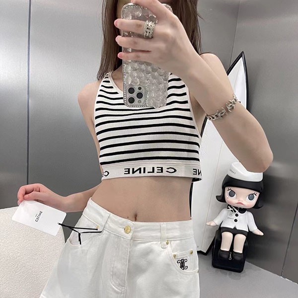 希少 セリーヌ 偽物 アスレチックニット ストライプ スポーツブラ Ces18608