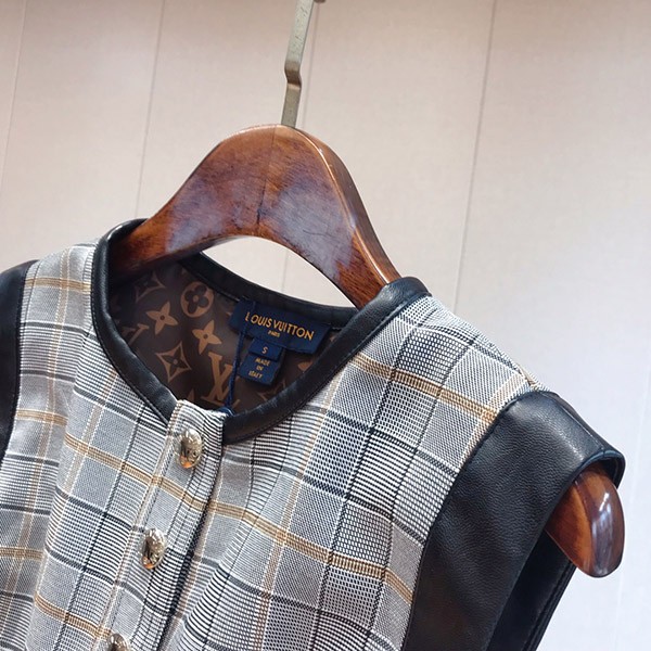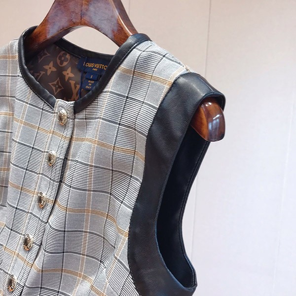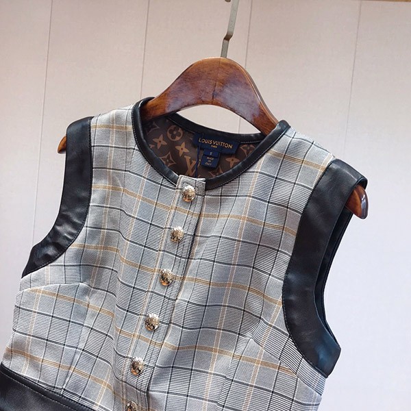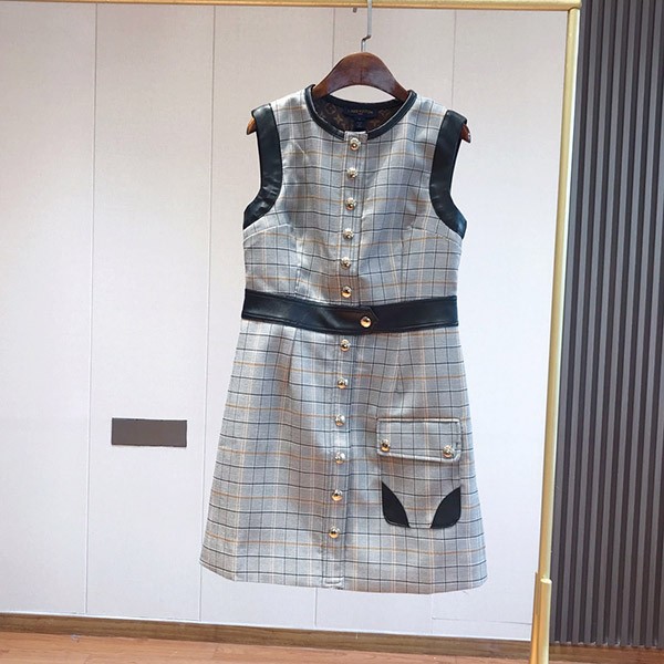 【23FW☆上質】ルイヴィトン 偽物 レザーアクセントチェックドレス 1ABS0G