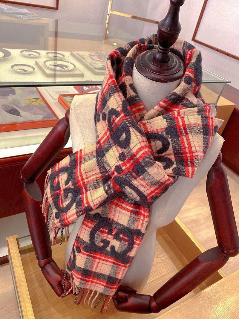 稀少 グッチ GGジャカード チェック ウール スカーフ guq83444