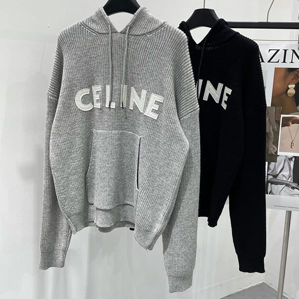 定番セリーヌ 偽物 フードセーター リブ編みウール パーカー 2色 2A85W423P08GC