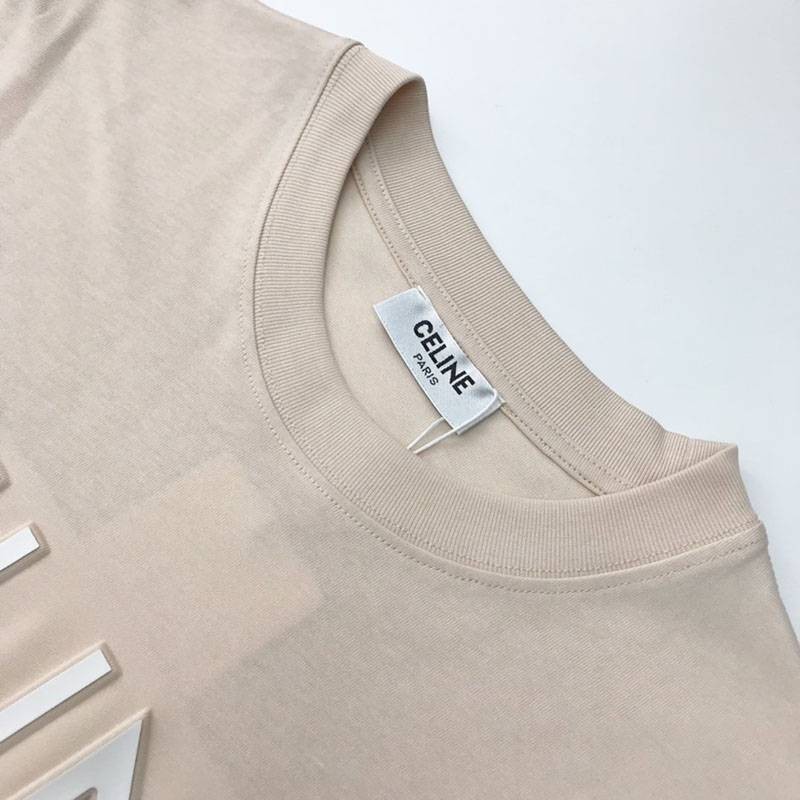 入手困難セリーヌ ルーズ Tシャツ 偽物 コットン ベージュ Cei46378