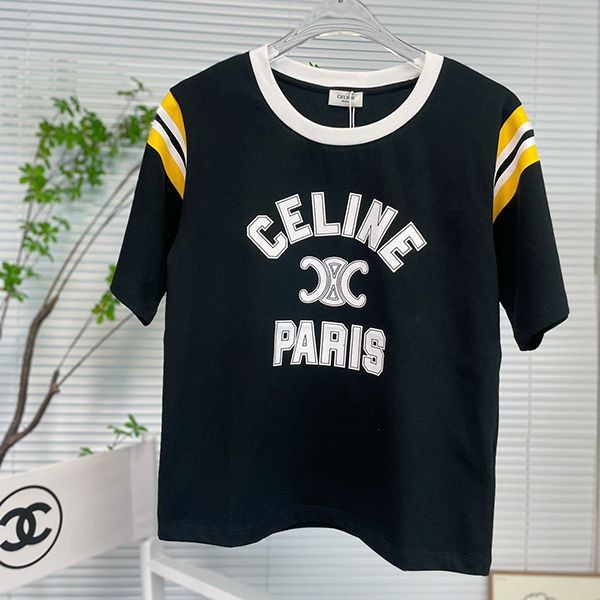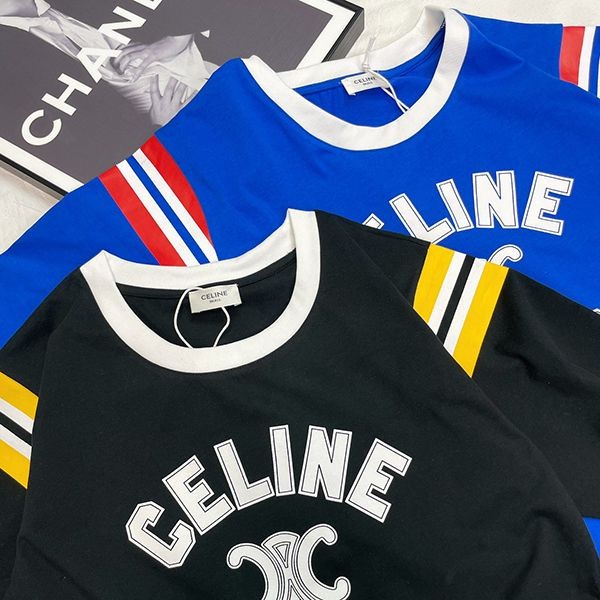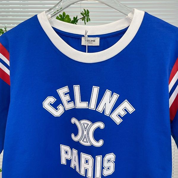 n級 おすすめセリーヌ 半袖 ボクシー Tシャツ 偽物 トリオンフ 2色 Cef23777