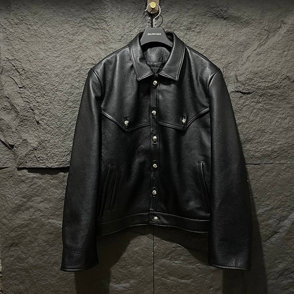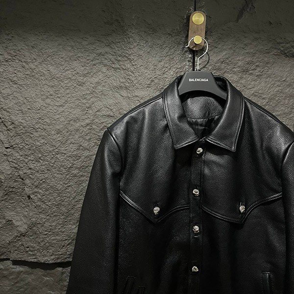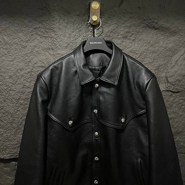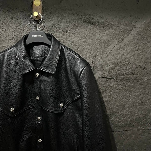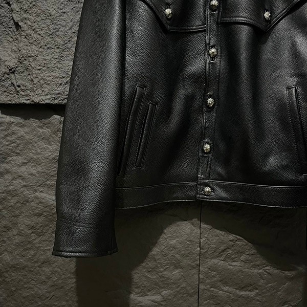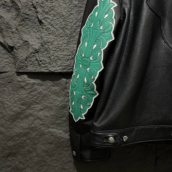入手困難♪クロムハーツ 偽物 フローラルクロス レザージャケット Blk×Grn Kue10837