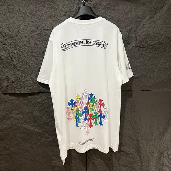 クロムハーツ 偽物 スクロール マルチカラー カラフル クロス Tシャツ Kue54267