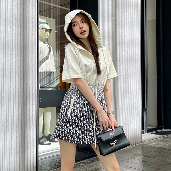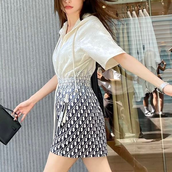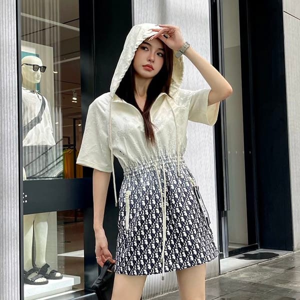 送料無料ディオール ショートフード付きドレス 半袖 コピー dea10230