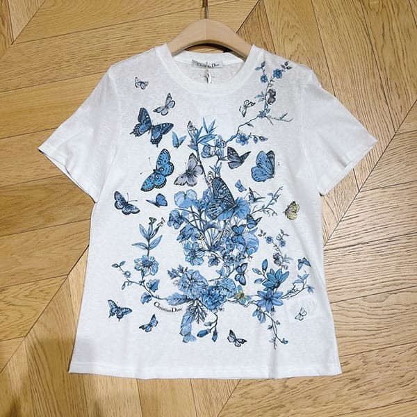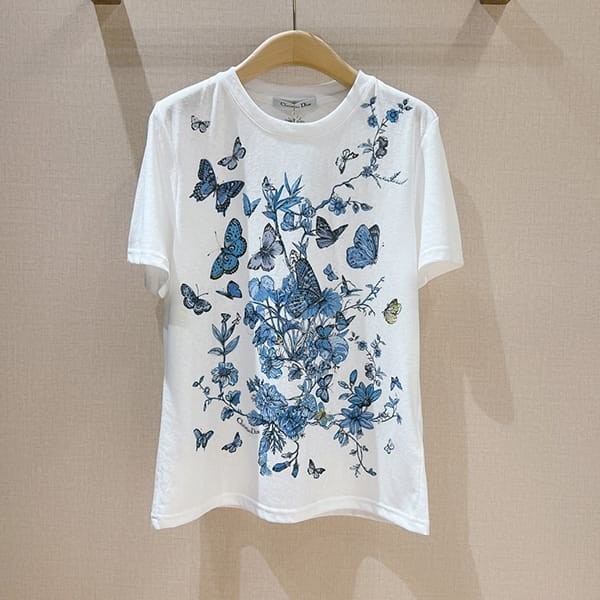 送料込ディオール 蝶×花柄 Tシャツ 偽物 トワル ドゥ ジュイ メキシコ コットン 2色 dek64390