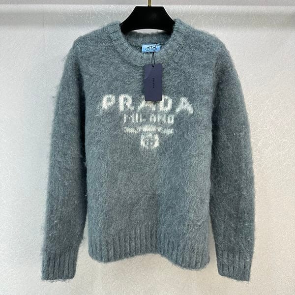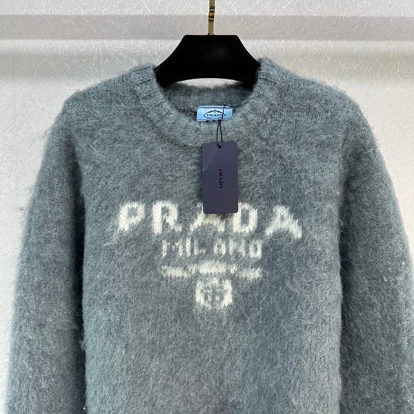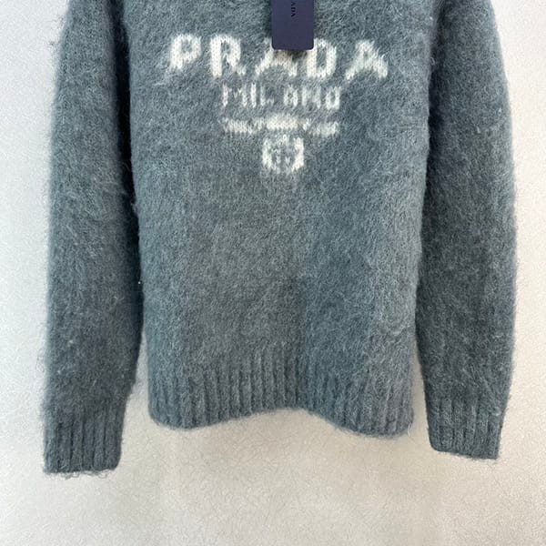 超希少!プラダ 偽物 ロゴ ウール カシミア 長袖ニット セーター グレー puk95688