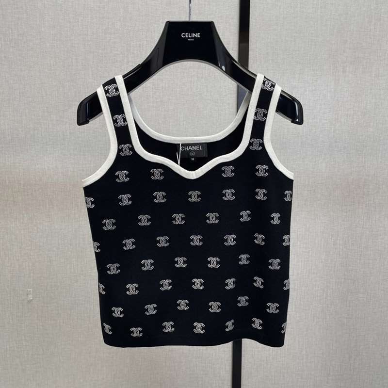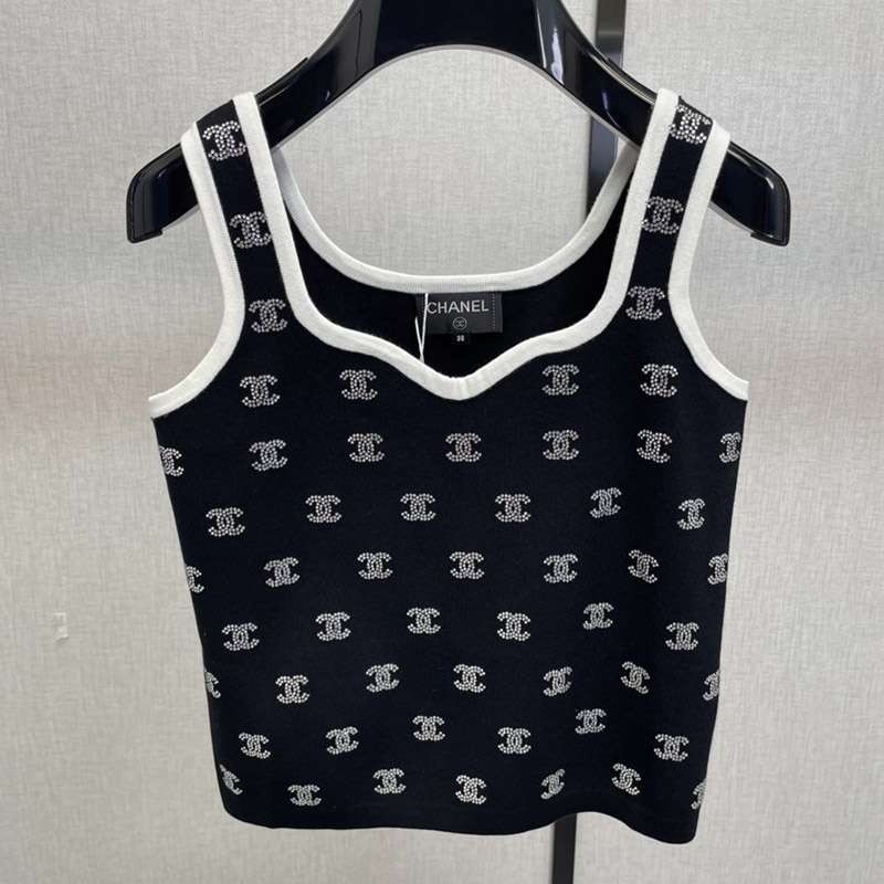 人気No1シャネル アイコン ロゴ キャミソール 偽物 ブラック shz55871