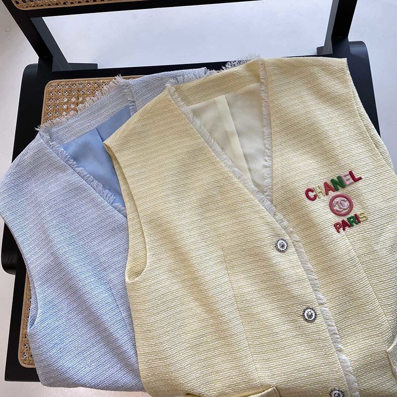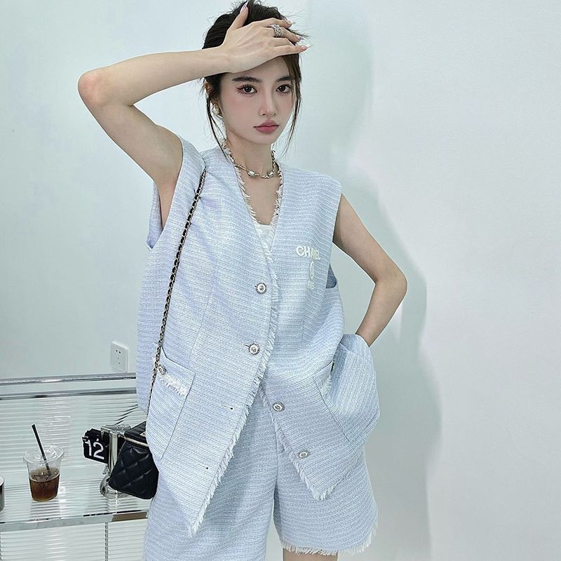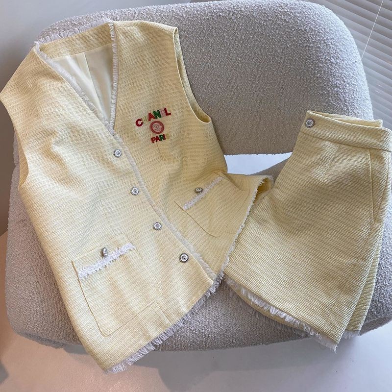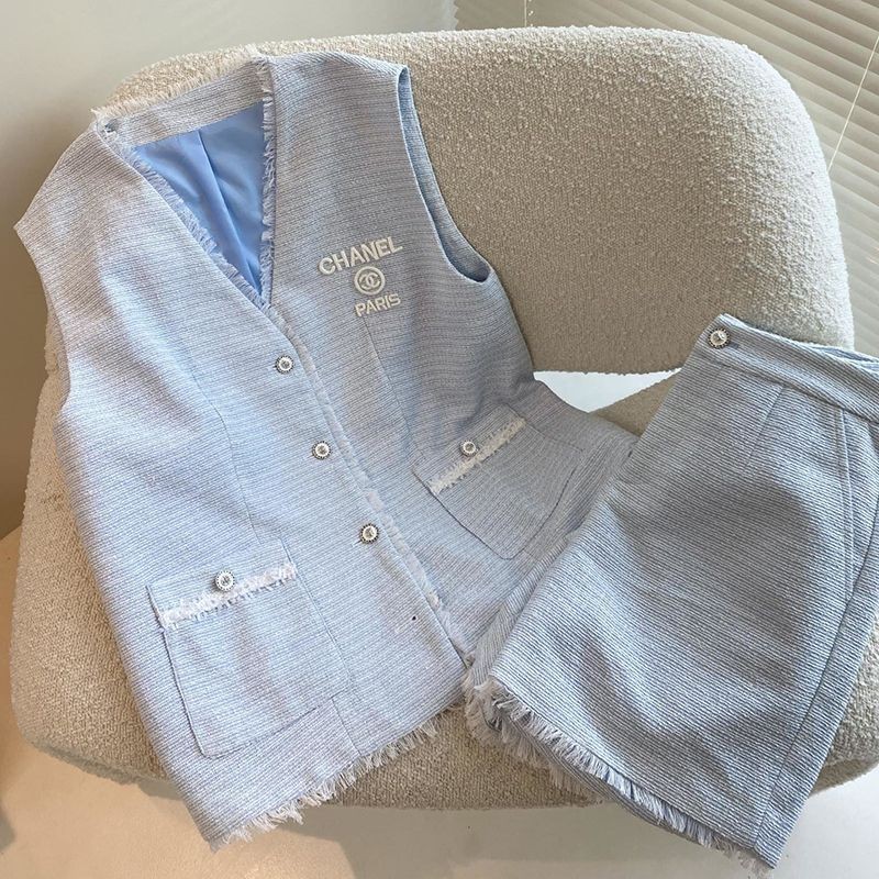 【国内発送】シャネル 偽物☆ベスト シルク & コットン ツイード 2色 上下セット shf72046